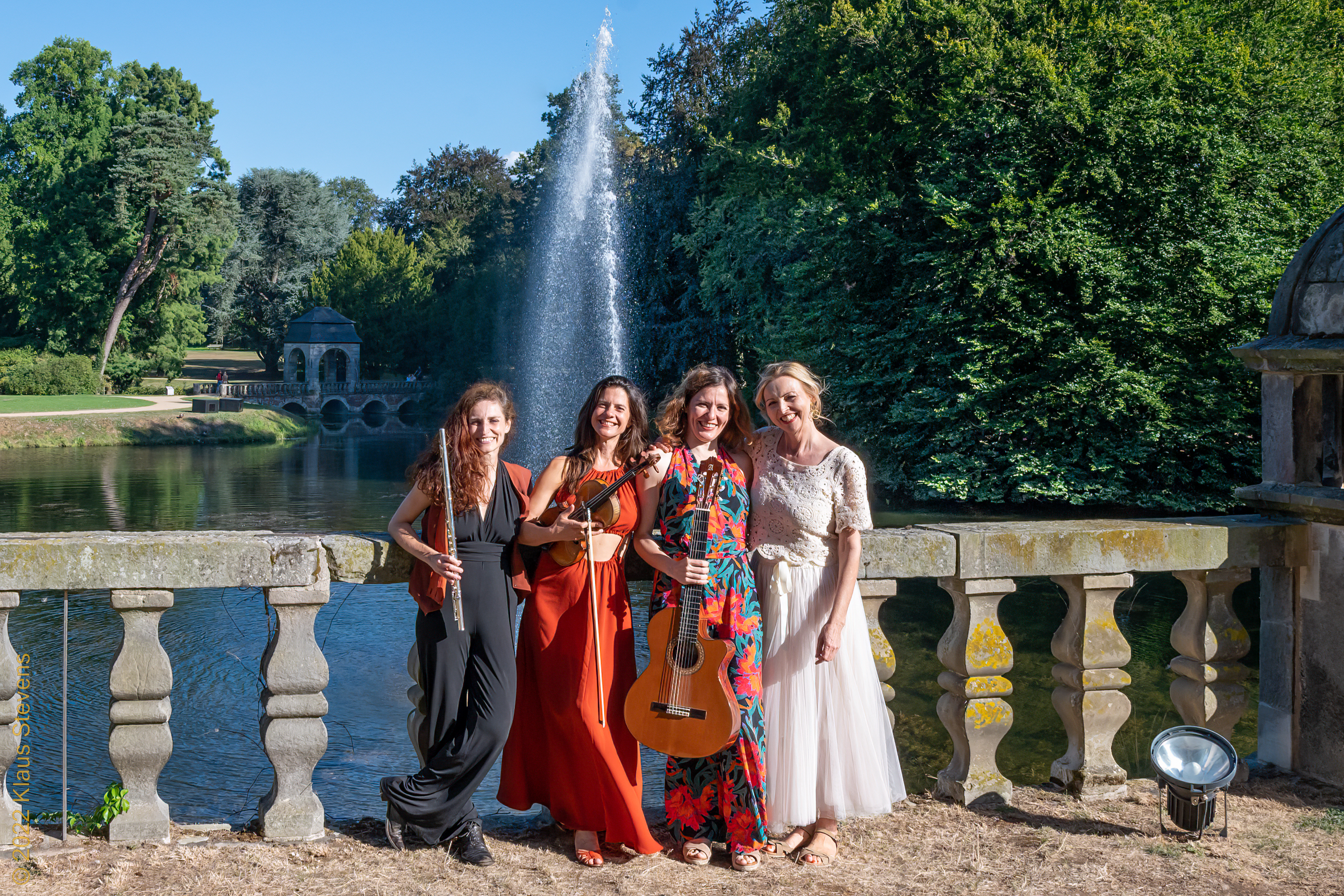 Fotos von „Lusoriental“ mit dem Faya Ensemble im Innenhof von Schloss Dyck. Fotograf: Klaus Stevens